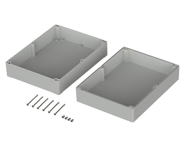 Classic industrial enclosure. Precisely mounted neoprene seal in the enclosure lid. Mounting pins for electronics in the base. Non-detachable screws from the lid mounted to high-quality sleeves in the enclosure base. Size-matched mounting plates, TS rails, hinges, brackets for mounting casings on masts. The high quality of the material used is greatly appreciated during casing milling.