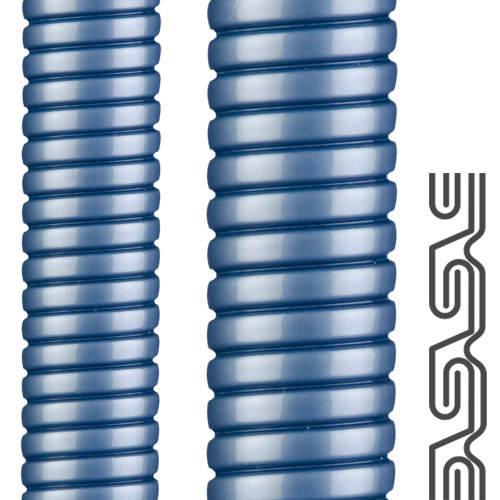 Flexa FLEXAgraff-PU-AS s a metal protective conduit, made from cold-galvanized strip-wound steel, sheathed in flame retardant polyurethane. Has a double-overlapped profile (Agraff). Available in blue.