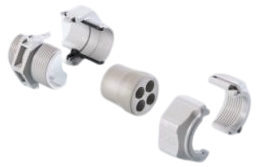 Pflitsch split cable glands from the UNI Split Gland series are designed for cable routing in applications requiring easy installation. The housing is made of PC plastic and is available in grey or black. The glands offer IP67 protection (type 4X), comply with EN 60423 and meet the requirements of EN 45545-2 (HL2) and EN 45545-3 (E10). Operating temperature range: -20°C to +80°C.