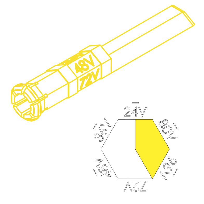 160-19 to uniwersalny, żółty pin kodujący dedykowany do złączy IBC 320. Służy on do mechanicznego zapobiegania nieprawidłowemu połączeniu różnych systemów napięciowych. Pin kodujący obsługuje napięcia stałe (DC): 24V, 36V, 48V, 72V, 80V i 96V.