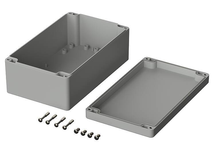 Klasyczna obudowa przemysłowa. Precyzyjnie zamontowana neoprenowa uszczelka w pokrywie obudowy. Kołki do montażu elektroniki w podstawie. Niewypadające śrubki z pokrywy obudowy montowane do wysokojakościowych tulejek w podstawach obudów. Dopasowane rozmiarowo płyty montażowe, szyny TS, zawiasy, uchwyty do montażu obudów na masztach. Wysoka jakość użytego materiału jest bardzo doceniana podczas frezowania obudów.