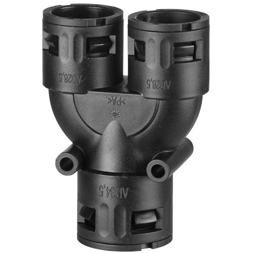 • RQY to rozdzielacz typu Y marki Flexa przeznaczone do peszli. Produkt wykonany z poliamidu (PA) lub TPE, wyposażony w szybkozłącze (technologia FLEXAquick distributor).